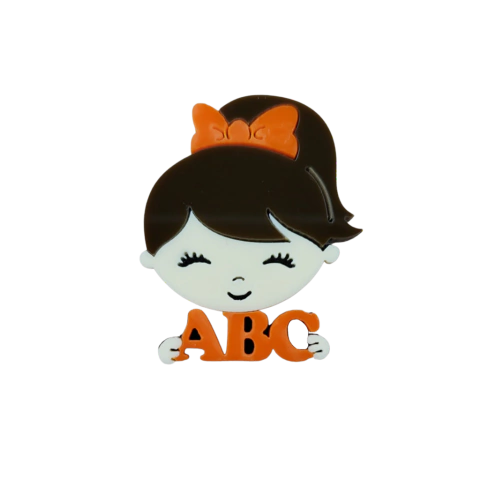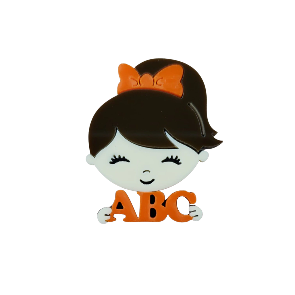 Aplique Acrílico Menina ABC Laranja 3,3 x 4,0 cm - 1 Unidade