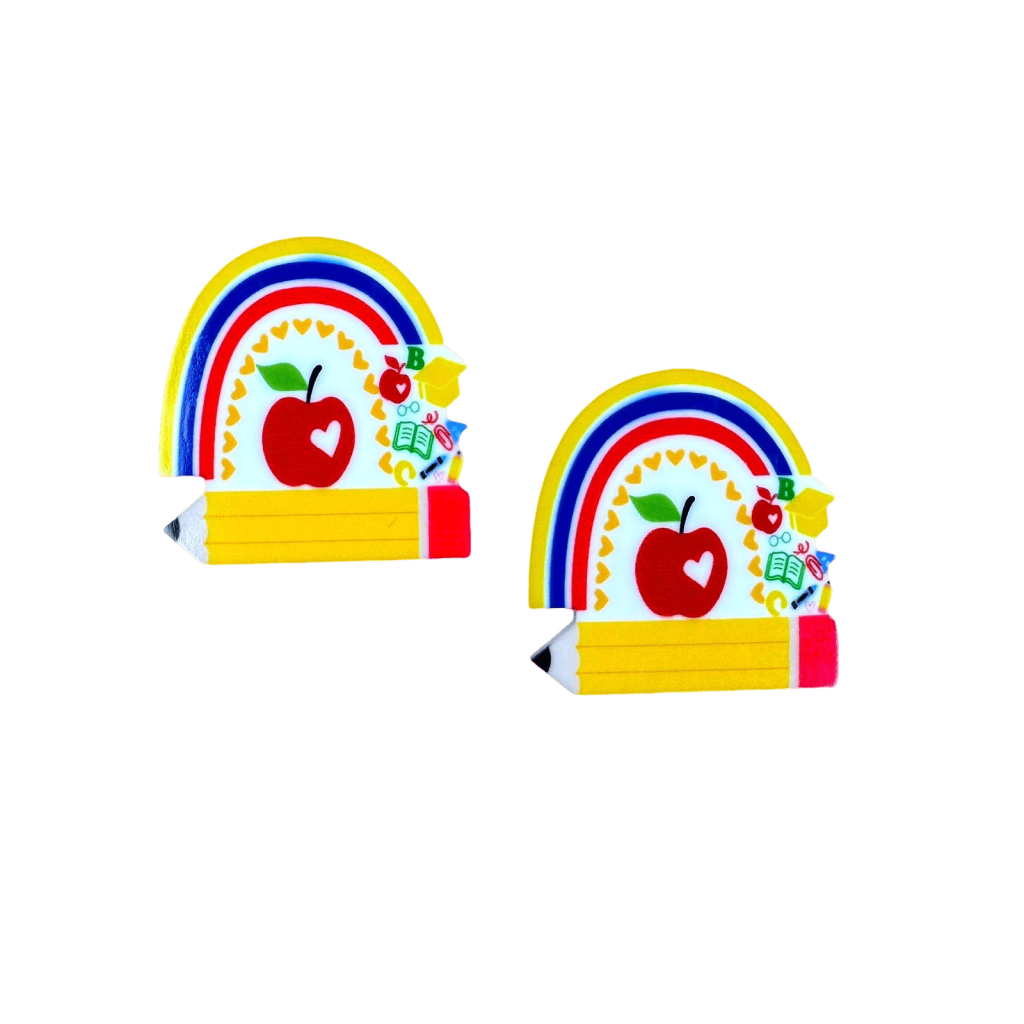 Aplique Arco Íris Maçã Lápis Acrílico (3,5 cm) - 2 Unidades