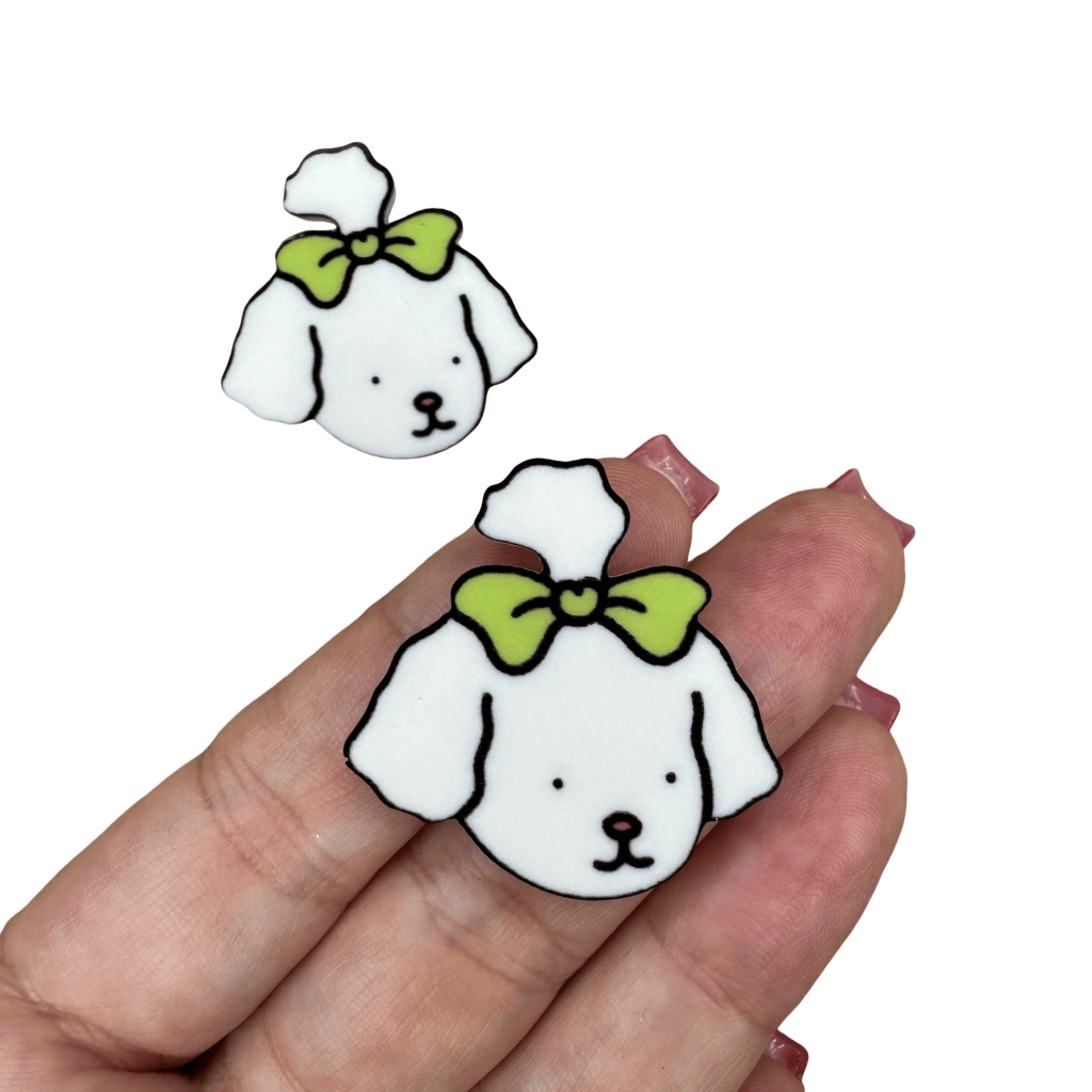 Aplique Bobbie Goods Mod2 (4cm) Cachorrinha Laço Coração Rostinho Plano Acrílico - 2 Unidades