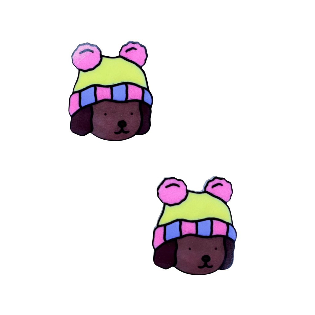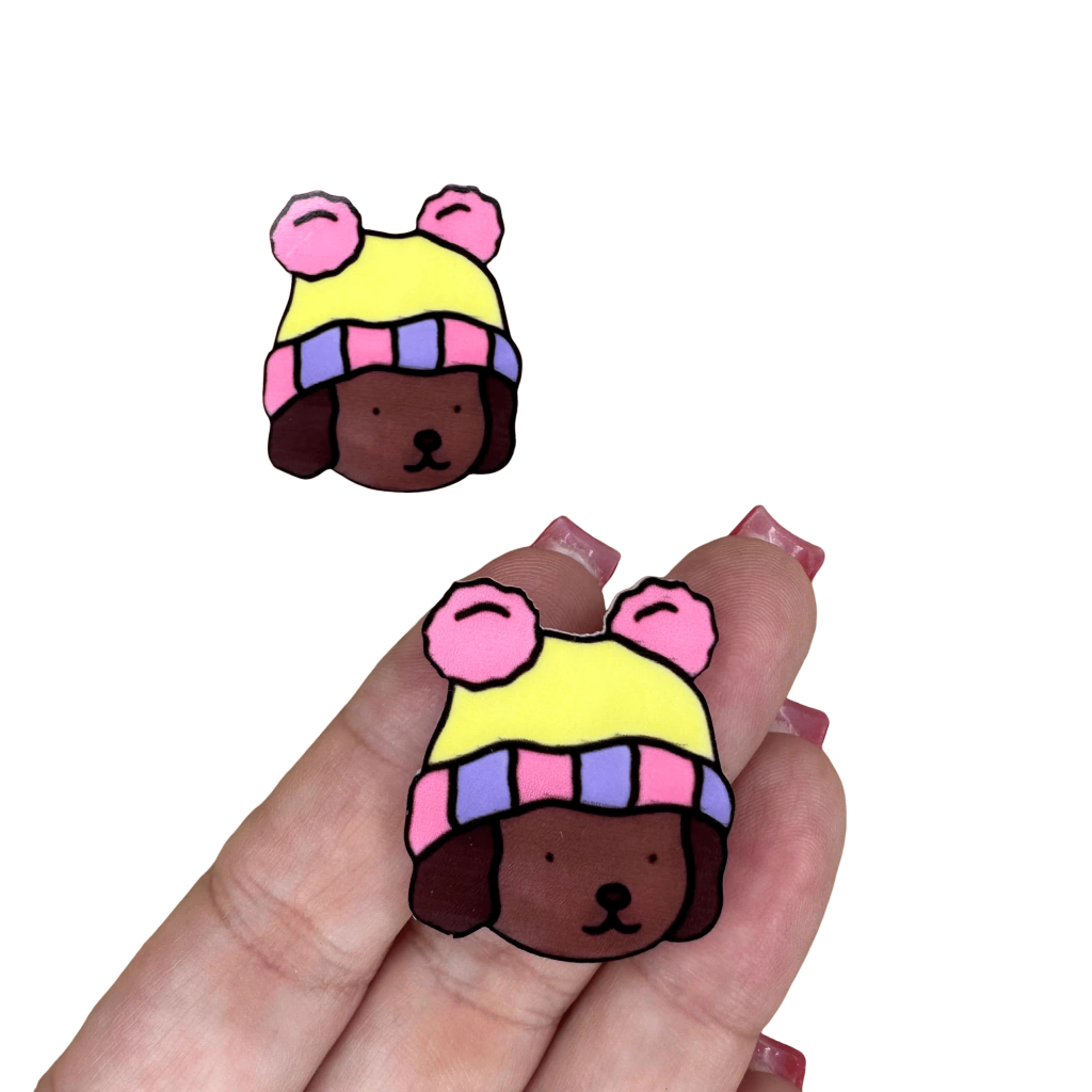 Aplique Bobbie Goods Mod7 (4cm) Touca Amarela Pompom Pink Rostinho Plano Acrílico - 2 Unidades