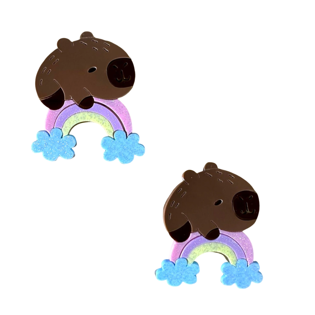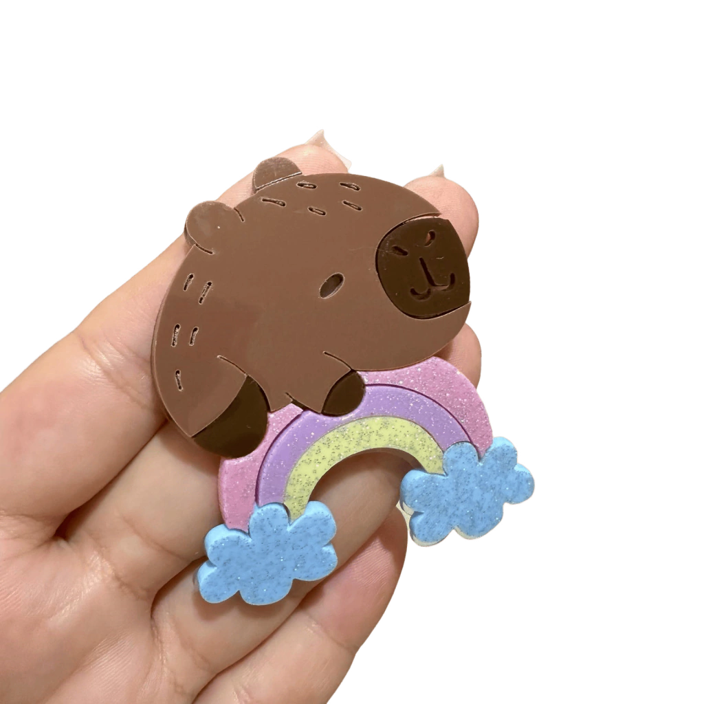 Aplique Capivara Arco Íris Candy Curvado (6cm) Acrílico - 2 Unidades