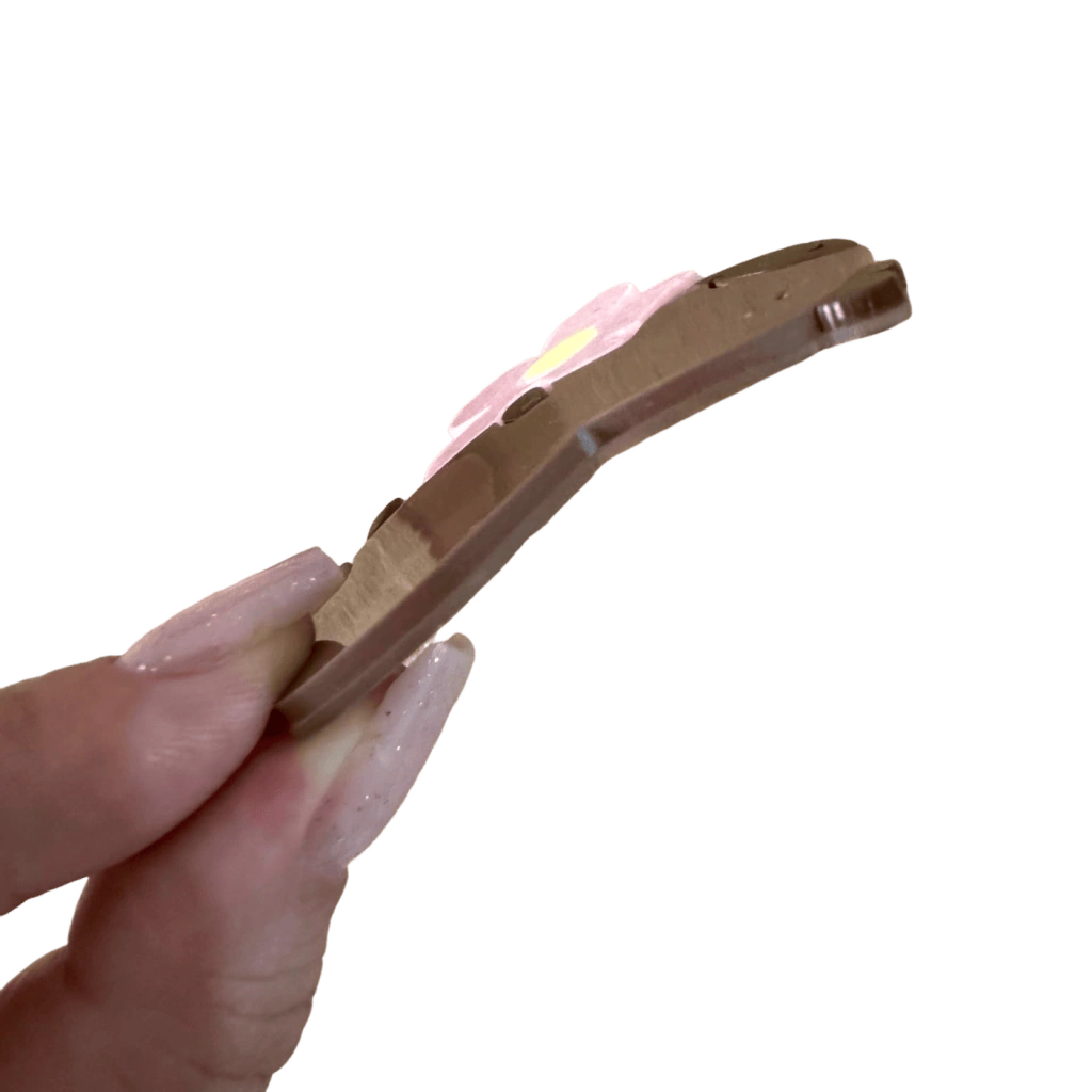 Transforme suas criações com o Aplique Capivara Flor Rosa Claro Glitter Curvado! Este lindo aplique de 6cm é feito em acrílico de alta qualidade, perfeito para dar um toque especial em seus projetos de artesanato.