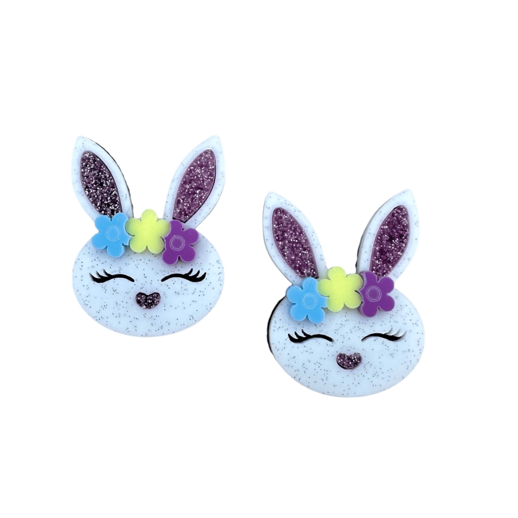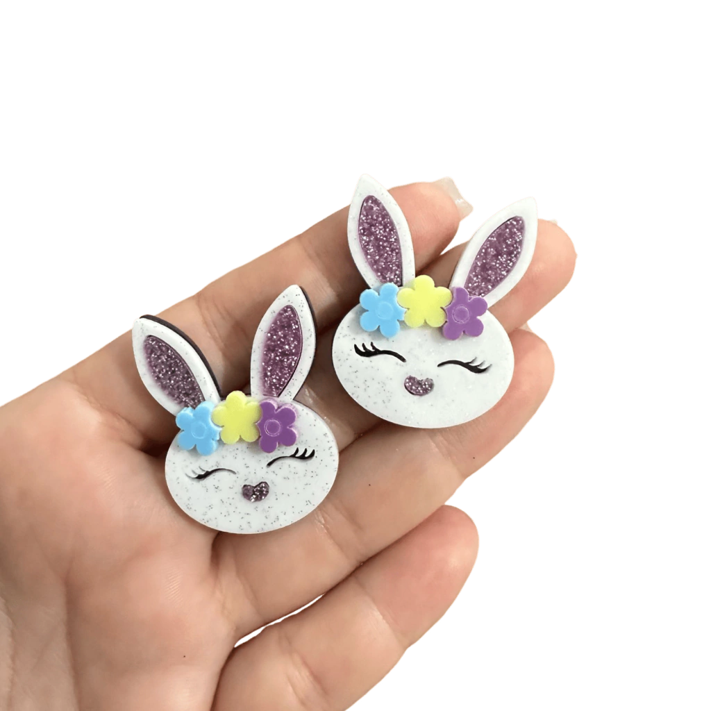 Aplique Coelhinha Branca Glitter Coroa de Flores Acrílico (4,0 cm)  Para Artesanato
