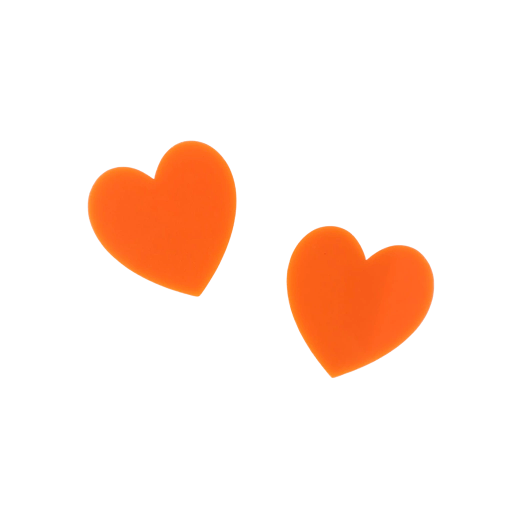 Aplique Coração (3cm) Plano Acrílico Cor Laranja Neon - 2 Unidades