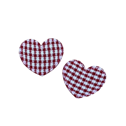 Aplique Coração Xadrez Tecido (3,5 cm) Cor Vermelho - 2 Unidades