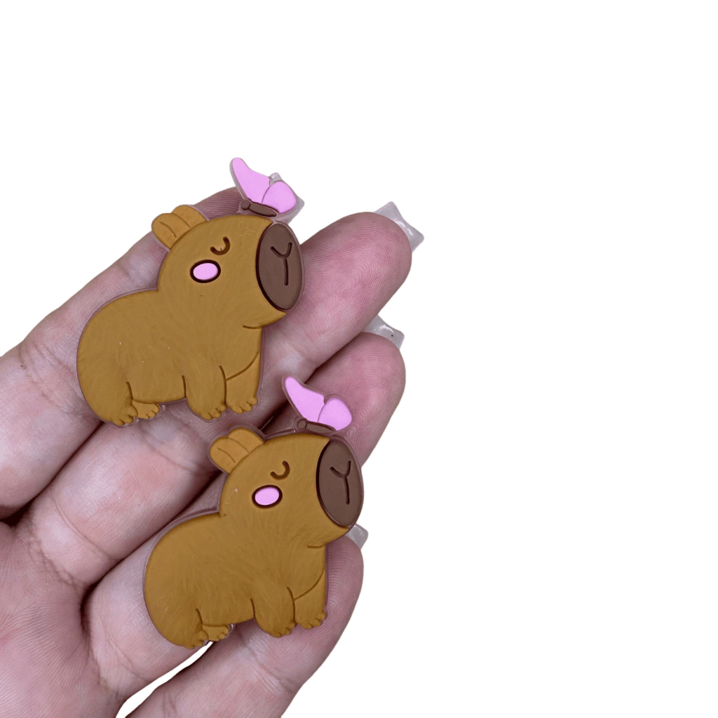 Aplique Emborrachado Capivara Borboleta Rosa (4 cm) - 2 Unidades