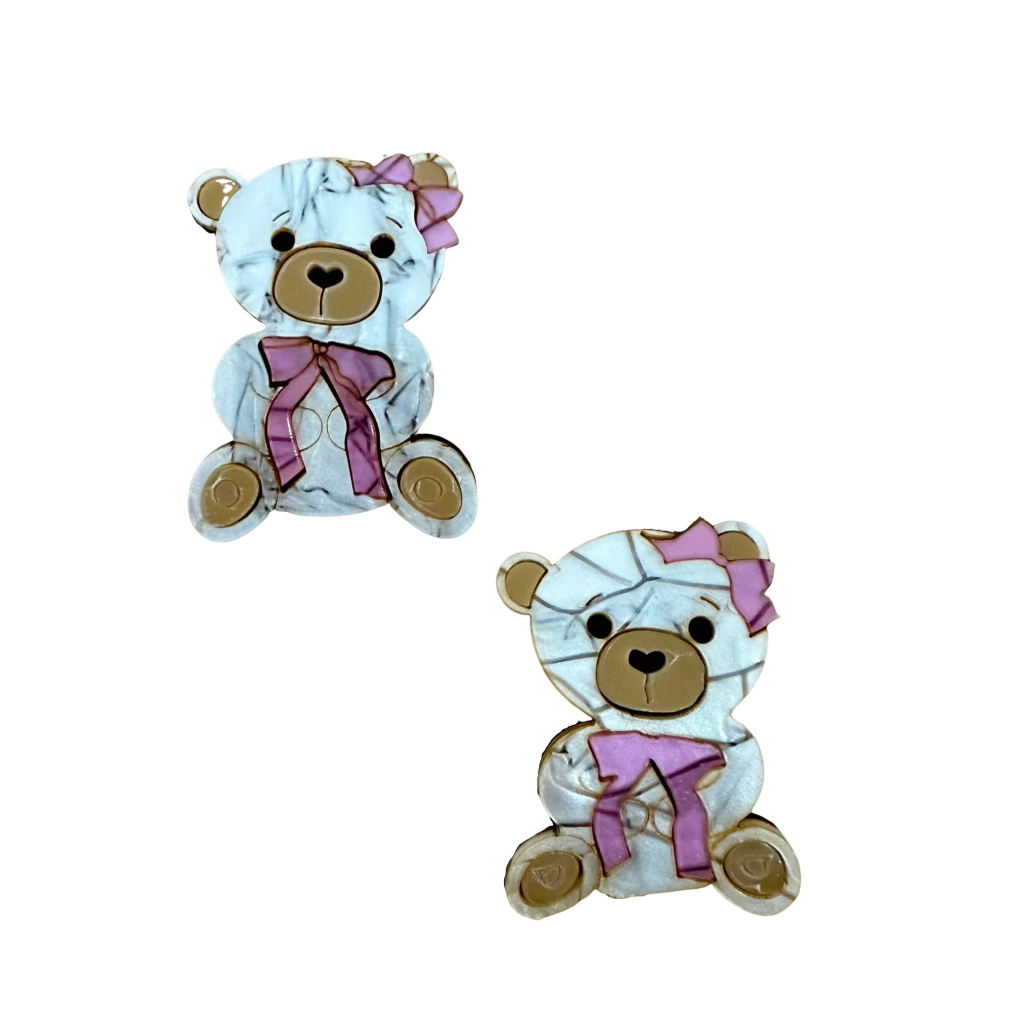 Aplique Madrepérola Ursinho Corpinho Curvado Laço Rosa (6cm) Acrílico - 2 Unidades