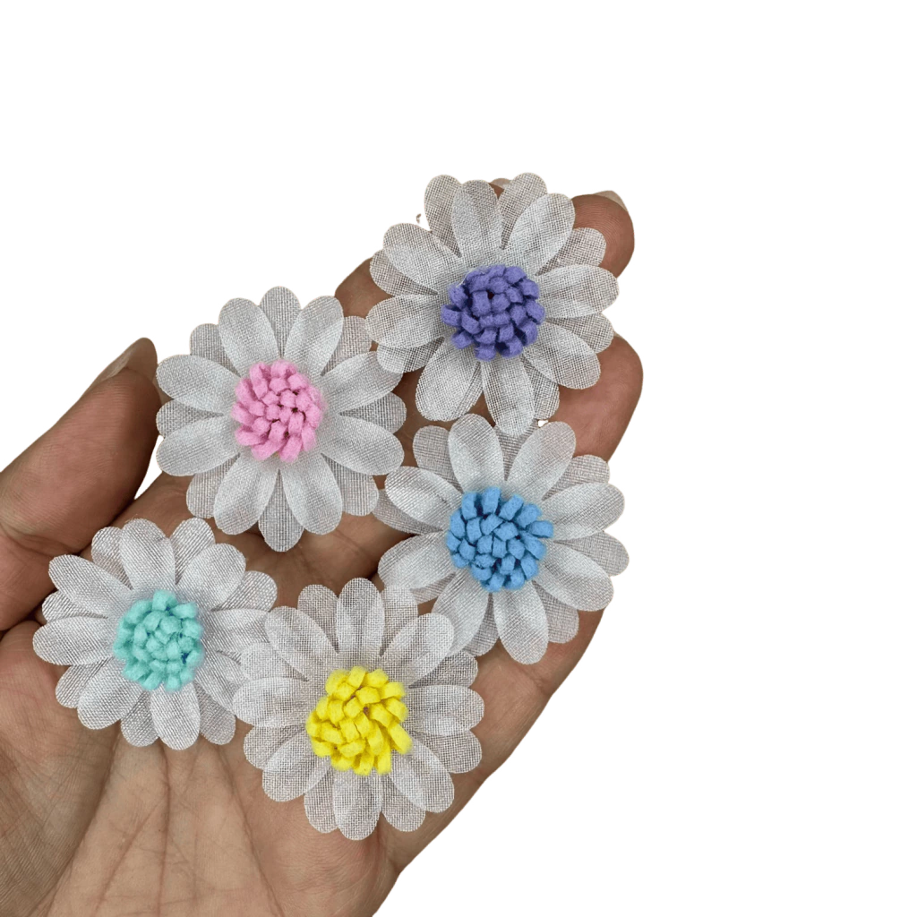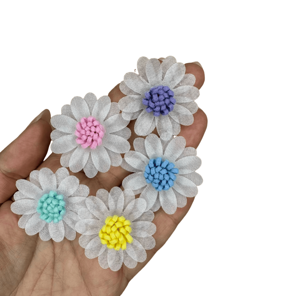 Aplique Margarida Organza (4cm) Miolo Feltro - 2 Unidades