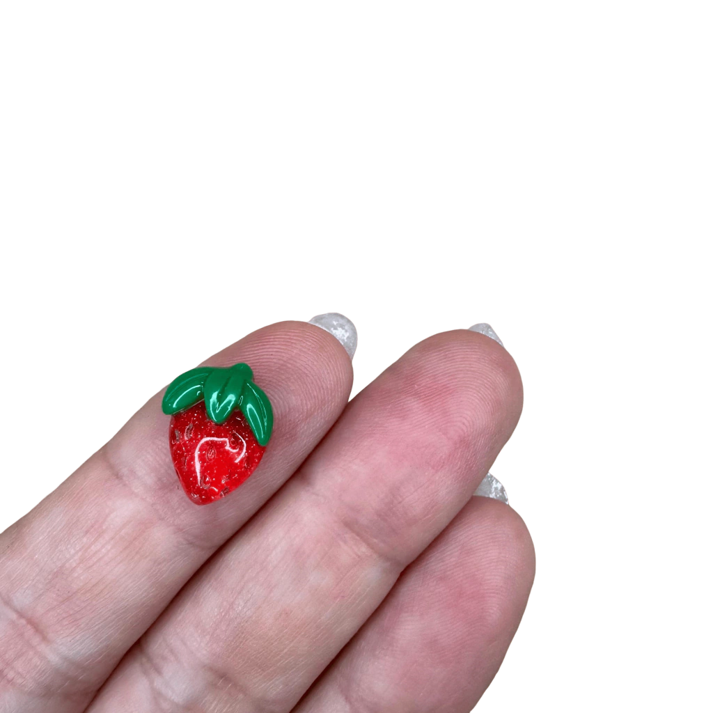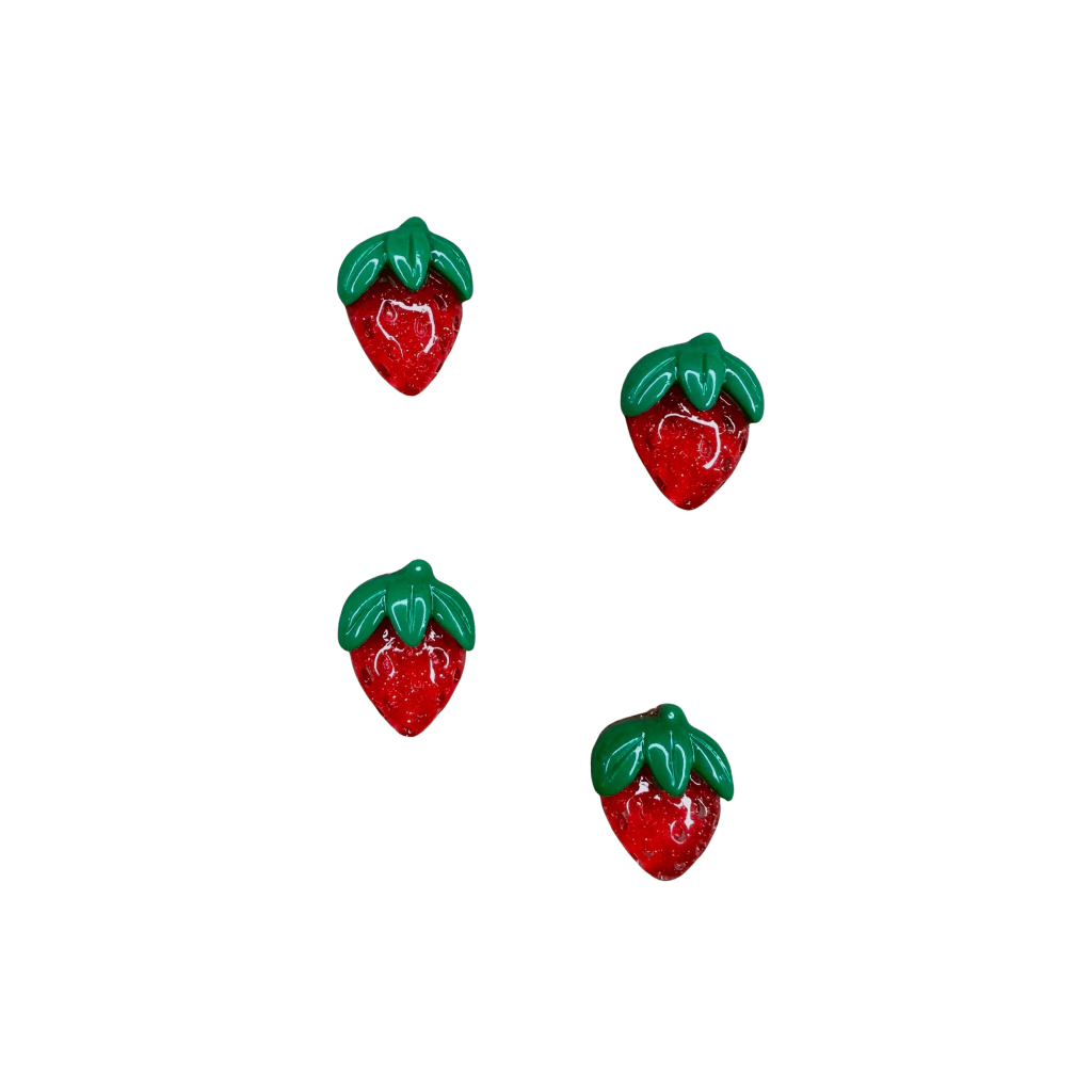 Aplique Mini Morango (1cm) Resina - 4 Unidades