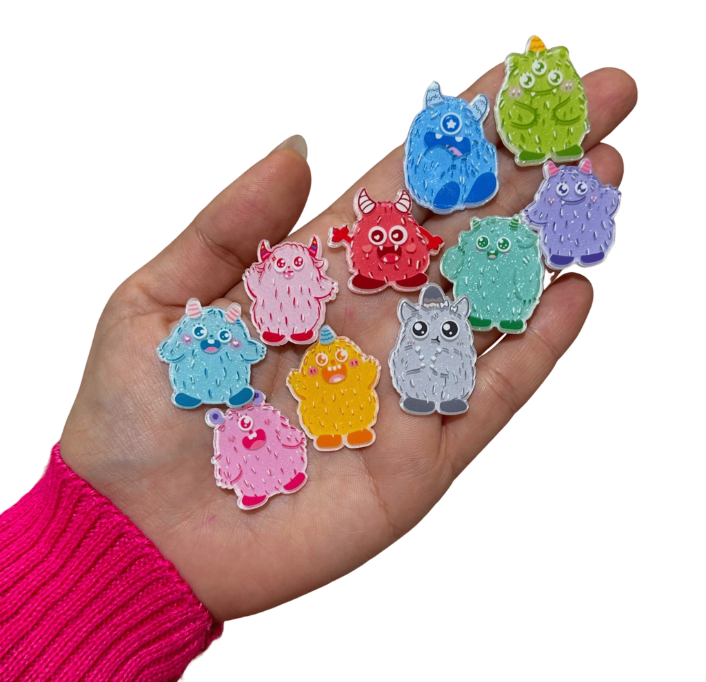 Transforme seus trabalhos com o brilho e a fofura dos nossos Apliques Monstrinhos em Acrílico Glitter!