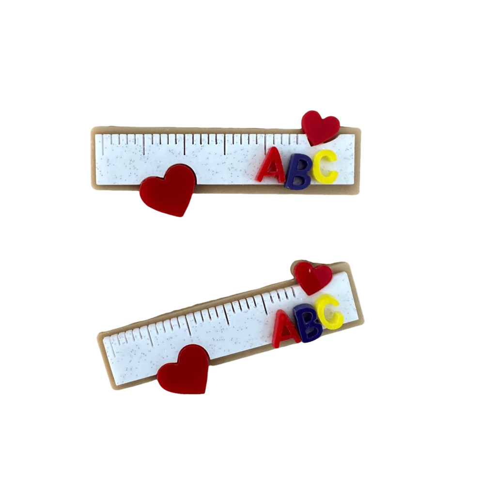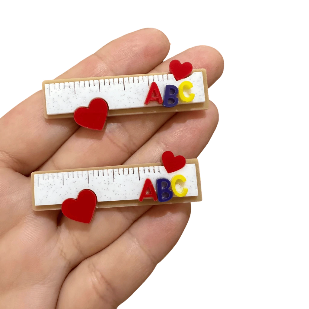 Aplique Para Bico de Pato Régua ABC Coração (5 cm) Vermelho Azul e Amarelo Acrílico - 2 Unidades