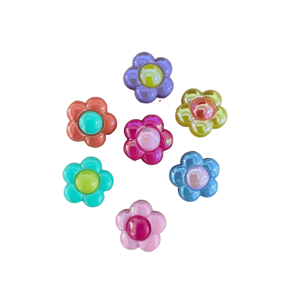 Transforme suas criações com o charme e a versatilidade do Entremeio Flor Irizada (15mm) Cor Misto - 6 Unidades e encante seus clientes com peças exclusivas e de qualidade!