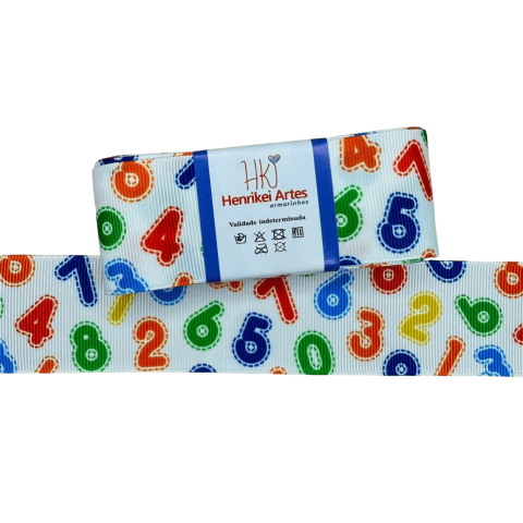 Fita Gorgurão Estampada Yama (38mm) Escolar Números Pespontados