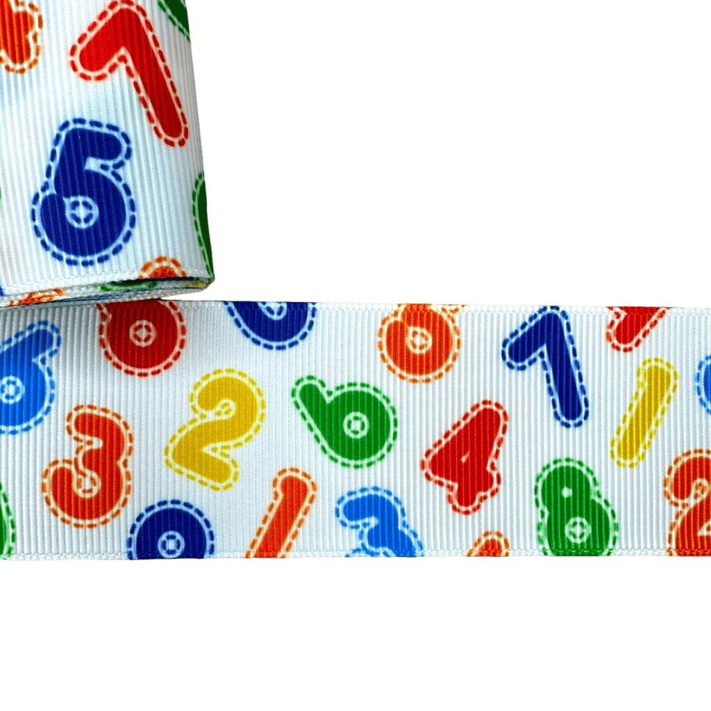 Invista em qualidade e estilo para seus projetos com a Fita Gorgurão Estampada Yama (38mm) Escolar Números Pespontados.
