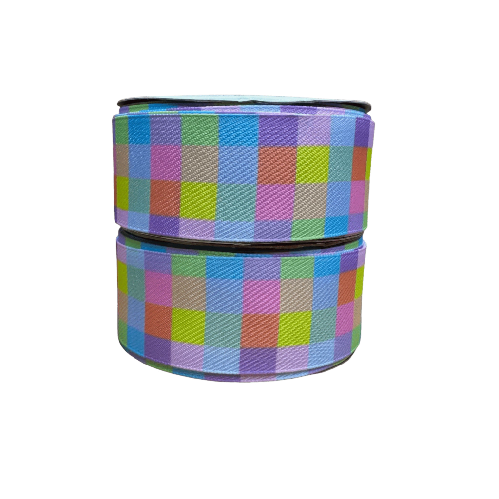 Eleve seus projetos de artesanato com a Fita Sinimbu Jeans Xadrez Colorido Candys! Com uma largura de 38mm, esta fita é perfeita para dar um toque especial e colorido às suas criações.