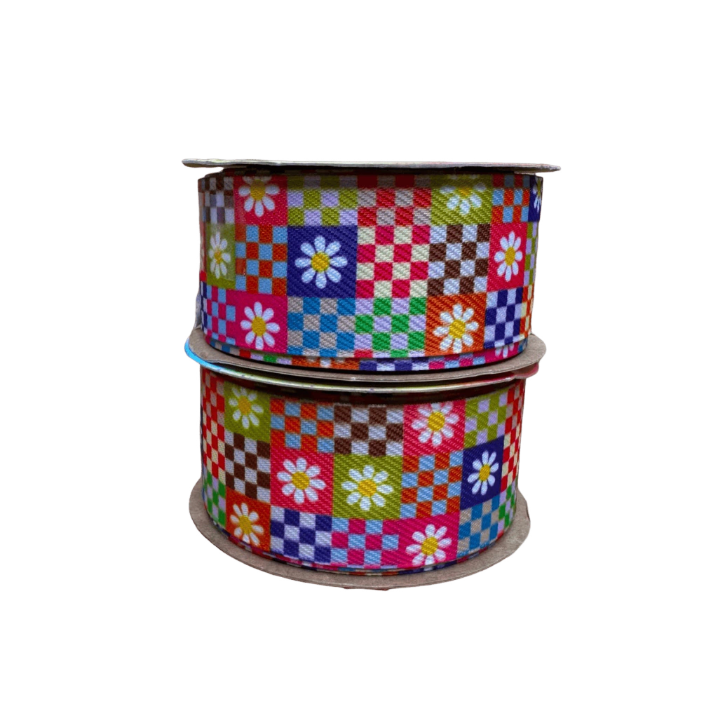 Fita Sinimbu Jeans Xadrez Colorido Margarida (38mm) Cor 30 - 10 Metros