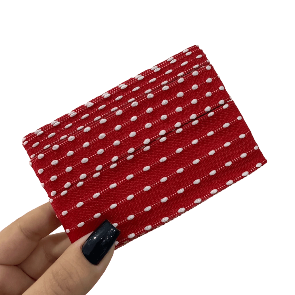 Kit Fita Pesponto Sinimbu Pompom Vermelho (6 Metros) - 2 Metros de Cada Para Artesanato
