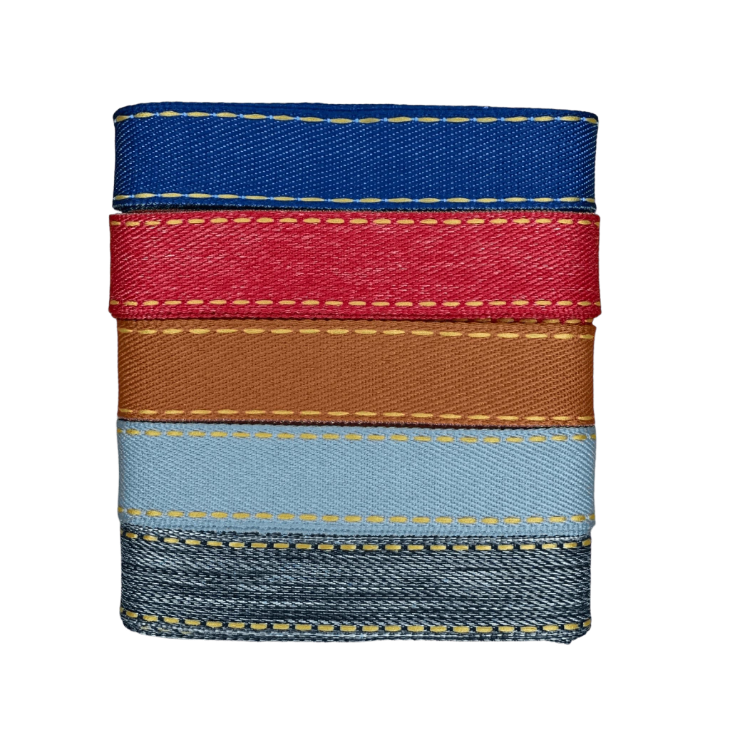 Eleve suas criações com o Kit Fita Sinimbu Jeans Pesponto! Com 10 metros no total, sendo 2 metros de cada cor mista, este kit é perfeito para trabalhos manuais, customizações e acabamentos em jeans e outros tecidos.