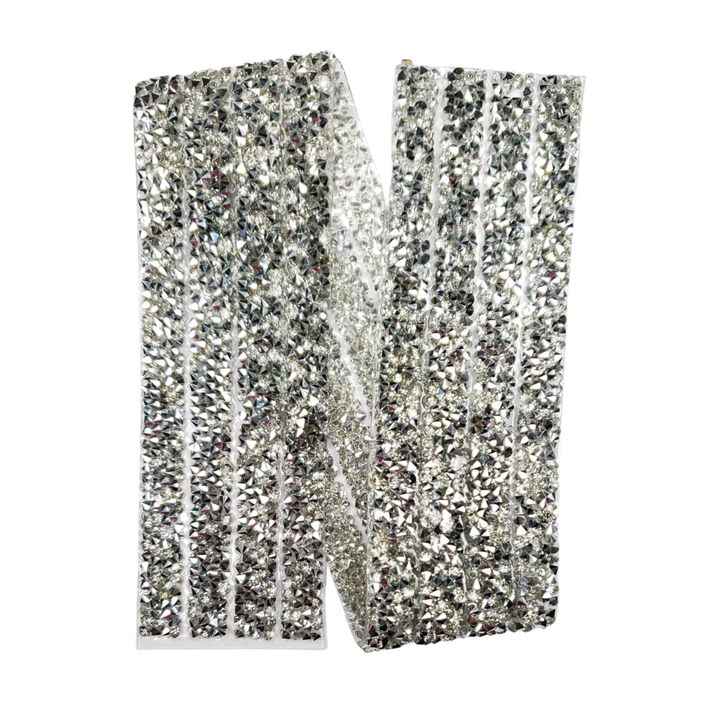 Manta de Strass Prata - 2 tiras de 1 x 40 cm cada